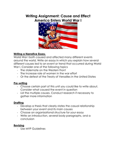There are several causes for the First World War. One of the main events that pronounced the beginning of the war was the assassination of Franz Ferdinand, heir to the Austro -Hungarian throne. The assassin was Gavrilo Princip, who was a member of a nationalist group called the Black Hand which aimed to unite the territories containing Serbs Cause and Effect on World War 1 Essay. Words3 Pages. Cause and Effect on World War 1. World War One, a huge conflict that sparked in and lasting all the way until The war was between the world’s greatest powers as two opposing sides; the Central Powers and the Allies. It was a chain of events that had started this was which consist of key features such as imperialism, alliances, Cause and Effect on World War 1 Essay Words | 3 Pages. Cause and Effect on World War 1 World War One, a huge conflict that sparked in and lasting all the way until The war was between the world’s greatest powers as two opposing sides; the Central Powers and the Allies