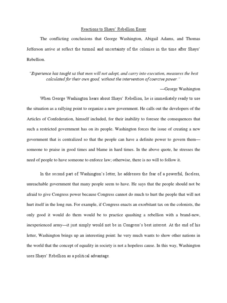 Causes Of Violent Protest During The American Revolution Words 5 Pages America from to was that the rebellions were always led by ordinary people to change government to benefit themselves, shays rebellion essay. Whiskey Rebellion Essay Words 5 Pages Democratic-Republicans, there were rebellions. Dbq Stamp Act Words 3 Pages This outraged lower class farmers as they relied on the sale and production of whiskey as a medium of trade shays rebellion essay well as a form shays rebellion essay income.